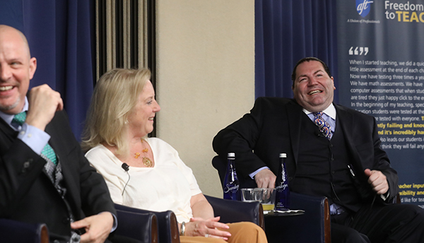 “It’s not rocket science to see that the United States has gone in the wrong direction and that we need to reverse course,” the AFT president said. “Teachers need the freedom to teach. If we want our public schools to be all we hope, if we want to attract and retain a new generation of wonderful teachers, this cannot be solely a teacher issue or a teacher union issue. We must act, and we must act together.”